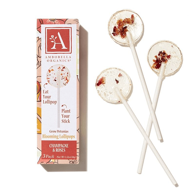 Introducing our botanical candy collection, featuring unique seed-bearing lollipops. Inspired by weekends spent gardening with grandma, these lollipops are designed to encourage people of all ages to connect with nature. After enjoying the candy infused with edible herbs and flowers, you can plant the biodegradable stick in soil, water it, and watch a herb or flower grow. Each plant grown is directly related to the flavors you just savored. Our products are crafted with sustainability in mind, proudly made in the USA, and run by a dedicated family team. The youngest member of our family, Willow, is just 1 year old! This Champagne & Roses 3-pack makes an ideal gift for those who appreciate both receiving florals and cultivating their own.